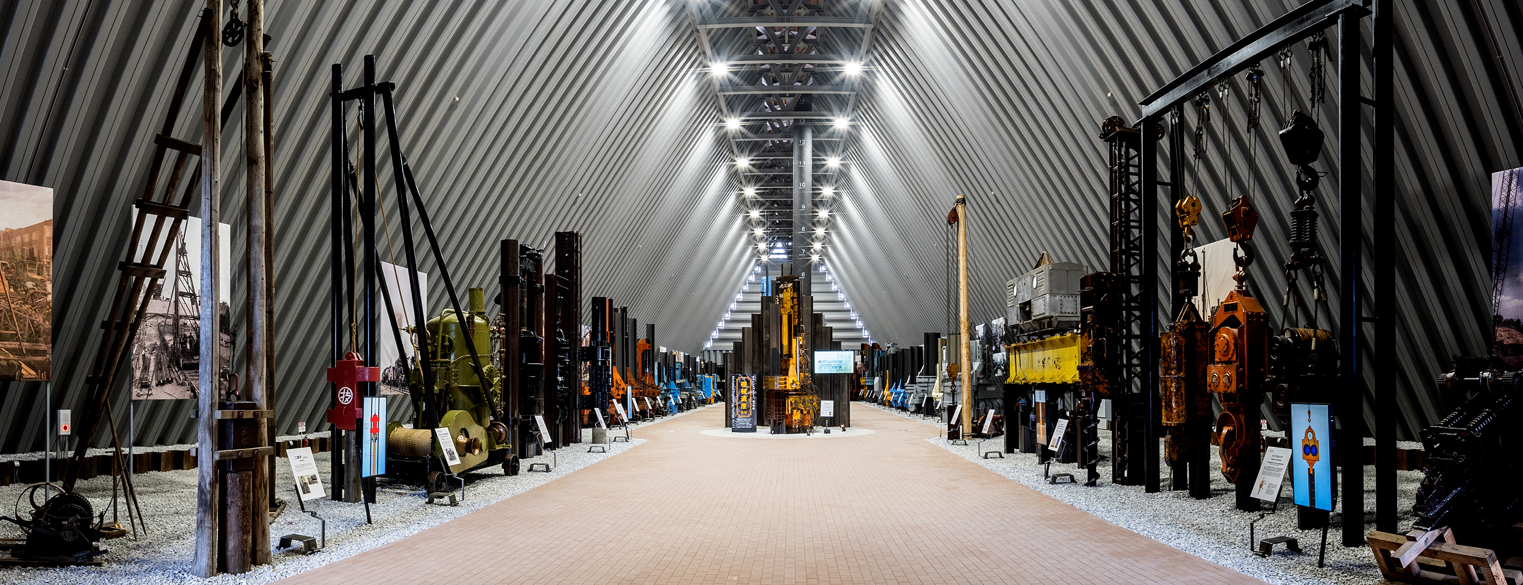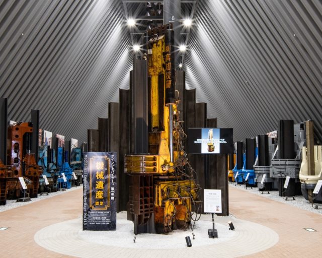 機械遺産に認定された「サイレントパイラー®」1 号機をはじめ、当グループが誇る歴代の発明・開発品、原理を異にする世界の杭打ち機などの実機を計 50 台展示しています。圧入機の進化の歴史や施工原理の違いをパネルや動画を用いて解説します。