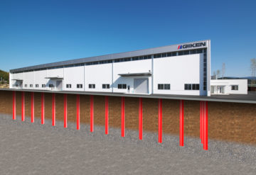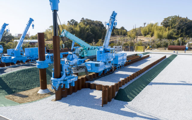 国内最大の工場で、グローバル展開に向けた製品開発を加速させる拠点として整備されました。近年主力としている大型製品の開発・試作・検証に対応しています。日本で初めて、鋼管杭回転切削圧入工法「ジャイロプレス工法®」を建築物の基礎杭の施工に採用し、鋼管 54 本(杭長 15~15.8m)を圧入しています。