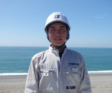 「仮設レス施工」により、海上でも本体工事のみを効率的に行うことができるだけでなく、淡路島近辺への環境的な負荷を軽減させることができました。また、潮風で機械が劣化しないよう、作業後に機械の手入れをすることはもちろん、私自身も工事の一部と捉え、身だしなみにも気を配っています。