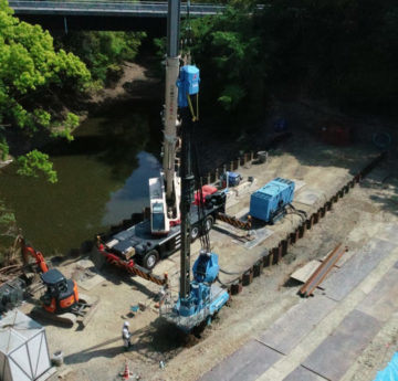 近年、大中規模地震やゲリラ豪雨等による甚大な被害が生じるなか、経年による石積みの変形等から地震による堤体決壊が懸念される「黒茂谷池(くろもだにいけ)」において「インプラント堤防(鋼矢板二重締切)™」による補強工事を行いました。