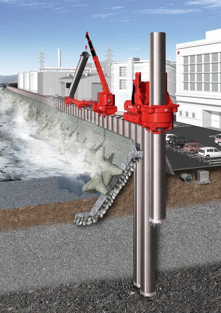 インプラント堤防TMは、鋼矢板や鋼管杭など剛性の高い許容構造部材を地中に連続して打ち込み構築される堤防です。インプラント構造TMの連続杭が、地震動による液状化・地盤沈下・側方流動や津波などの外力に粘り強く耐え、堤防機能を維持します。 地震や津波の被害が想定される海岸や河川に構築(または既存堤防を補強)することで、被災時の堤体損壊を防ぎ、人的被害と経済損失を最小限に食い止めます。