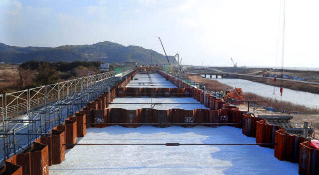 河川堤防においては「土堤原則」に阻まれているため実績はありませんが、高知海岸堤防改良工事の一部区間でこの構造が採用されています。