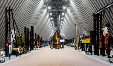 世界で唯一の杭打機ミュージアムです。当社グループが誇る歴代の発明・開発品や原理を異にする世界の杭打ち機など計 50 台を展示。建設公害の元凶と言われた杭打ち工事が圧入技術の実用化により無公害化された経緯などを解説しています。建物は、主要構造材に鋼矢板を採用して大空間を実現した全く新しい建築構造となっており、圧入技術と鋼矢板の新たな可能性を示しました。