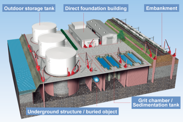 Natural disasters have occurred frequently around the world over recent years, from earthquakes to tsunamis, volcanic eruptions, typhoons, heavy rains, floods, and landslides. Sounding a warning early on, GIKEN SEKO has been proposing preventive measures and recovery technologies based on the Implant™ Method, under the Guard Method™ and Rescue Method™ names, and developing a track record in Japan and overseas.