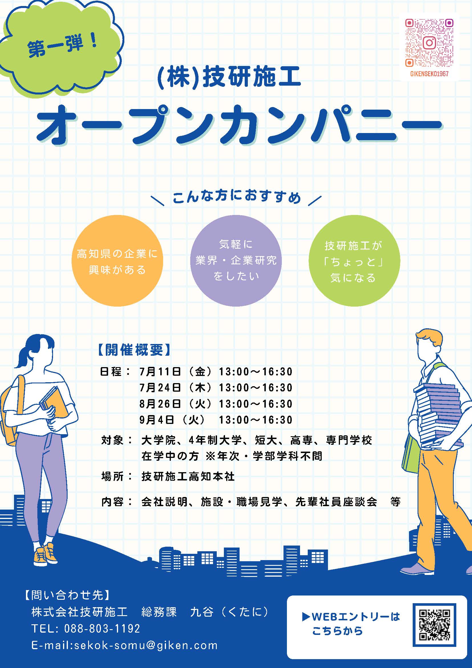 HPやパンフレットなどの文字情報だけでなく、実際の職場を自分の目で見て、実際に「技研施工で働く人」と会うことで、当社への理解が深まるとともに、皆さん自身が「どんな会社で働きたいのか」「どんな仕事がしたいのか」について見つめ直すことができますので、業界研究としてもご活用いただけます!