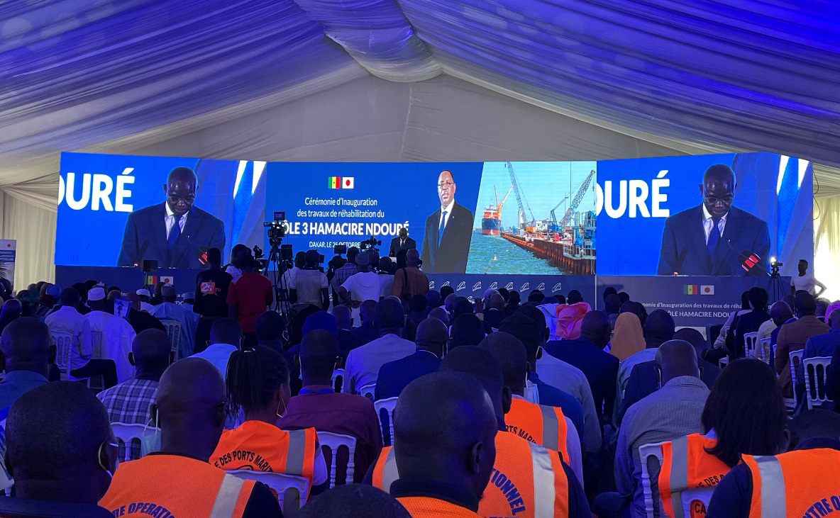 ODA(政府開発援助)案件の「ダカール港第三埠頭改修計画」の完工式が10月25日、セネガル共和国のダカール港にて開催され、当社グループ企業・株式会社技研製作所も出席いたしました。本案件は、当社が鋼管杭回転切削圧入工法「ジャイロプレス工法®」による延長約350mの岸壁改修工事(圧入工事部分)を2021年3月に完了した案件です。完工式には、セネガル政府よりンバイ漁業・水産経済大臣、日本政府より山田外務副大臣が参加されたほか、約400名の関係者が列席しました。現地では、本邦技術であるジャイロプレス工法が現地での課題を解決したことが高く評価されており、多くの関係者より感謝の意をいただきました。