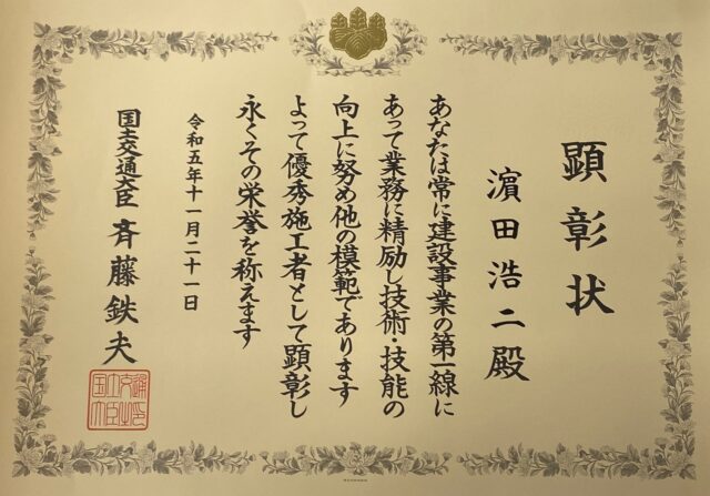 ■顕彰名:優秀施工者国土交通大臣顕彰(建設マスター)