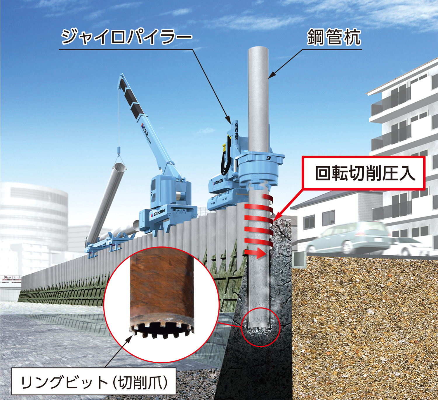 ~鋼管杭を硬質地盤や既存構造物に回転切削圧入~